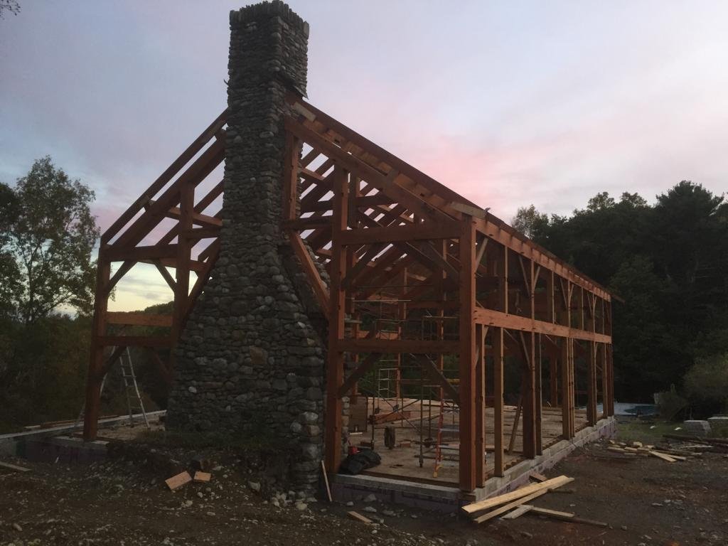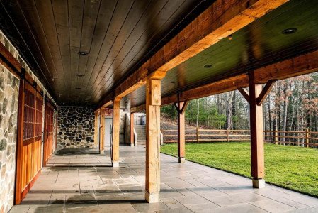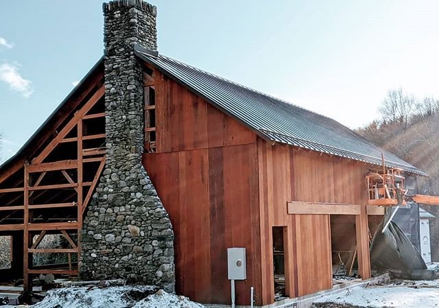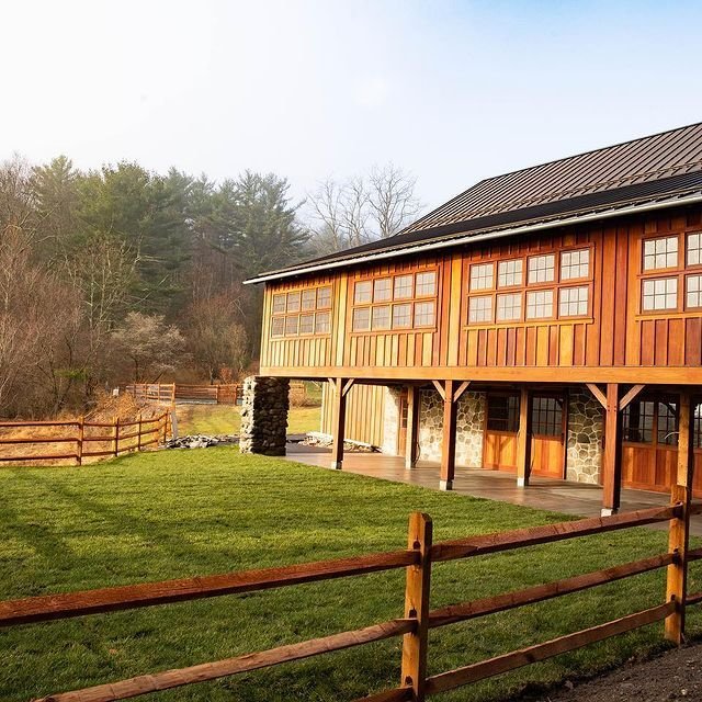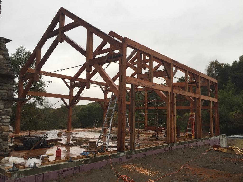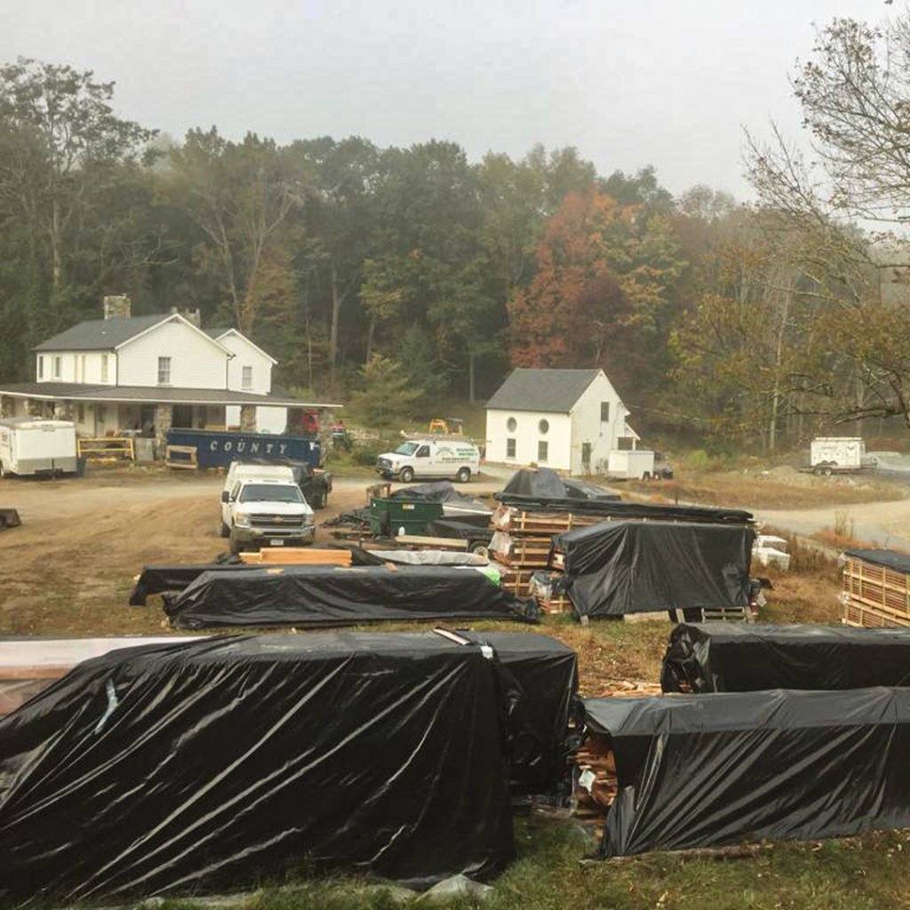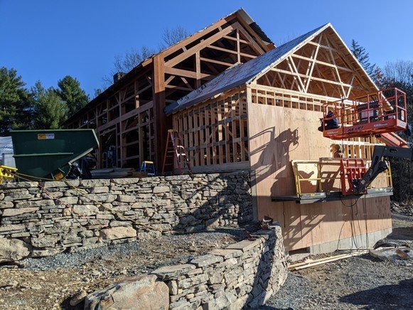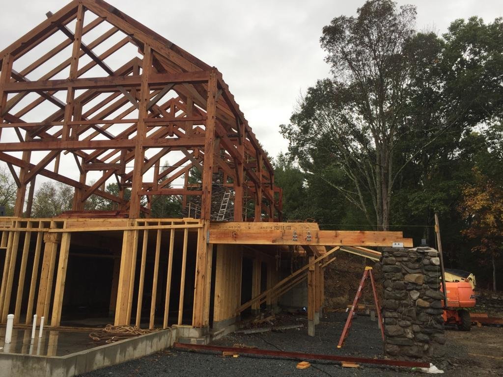 Construction on Sylvan Ridge Farm’s one-of-a-kind event barn will be completed in spring 2020. On one hand, the structure is traditional and historic, rebuilt on the footprint of the barn first erected by the Palmer family in the 1800s. To ensure authentic, high-quality workmanship, we employed Amish craftsmen from Lancaster County to erect the new mortise & tenon timber frame around the 14-foot-wide fireplace preserved from the original barn.