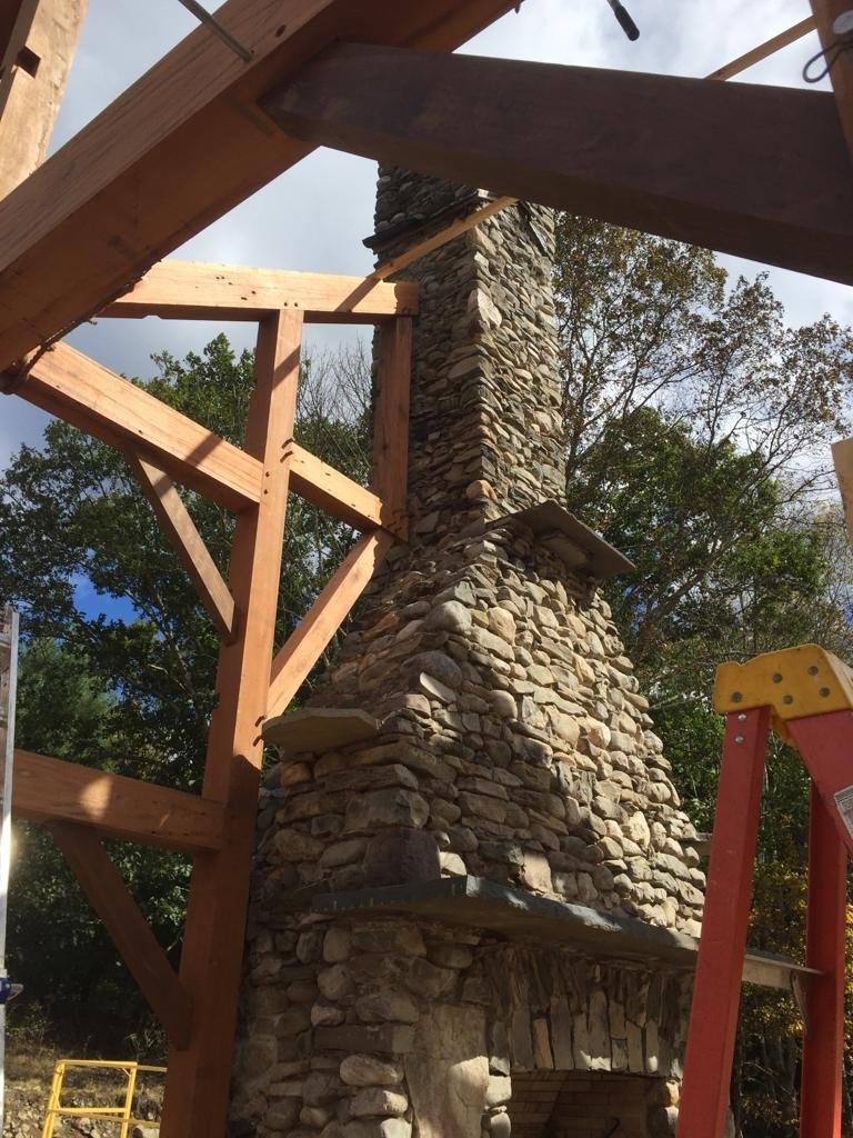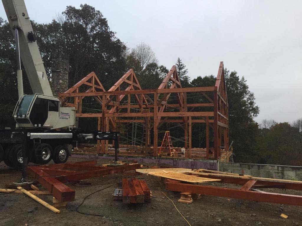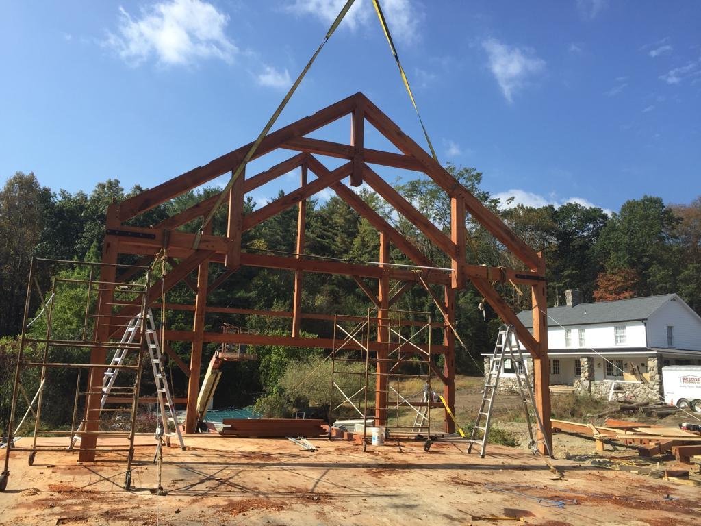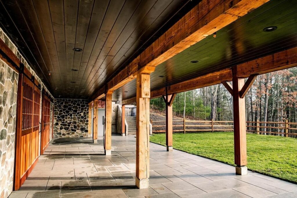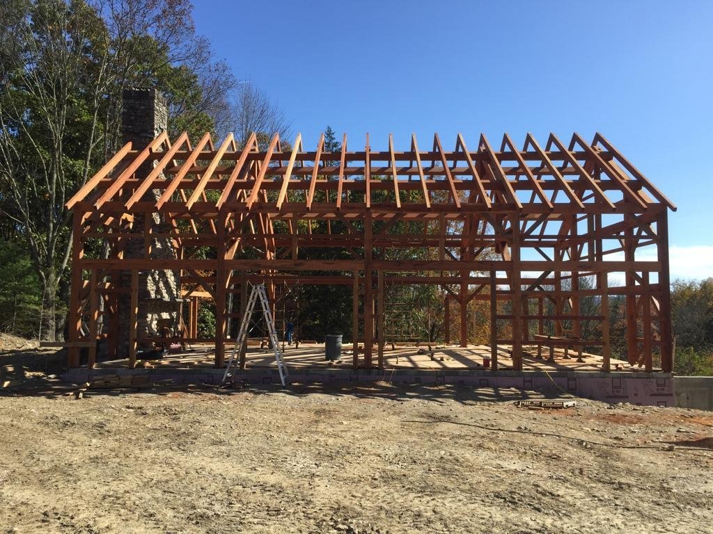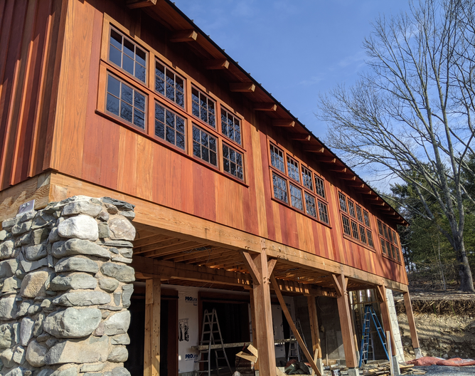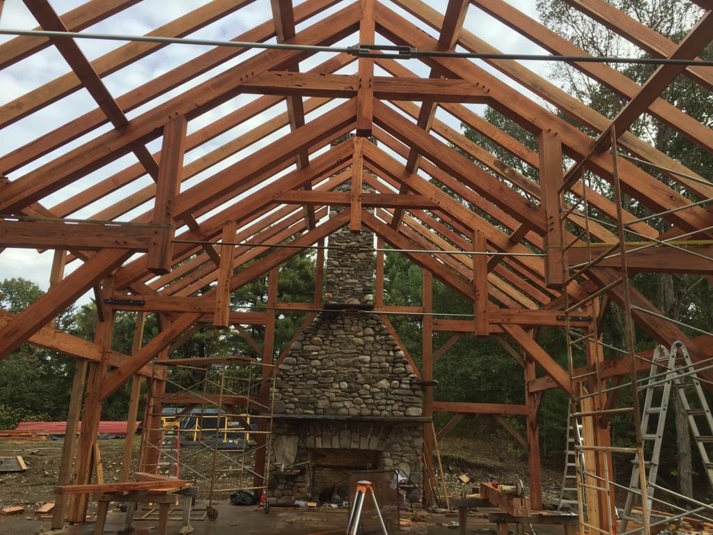 Construction on Sylvan Ridge Farm’s one-of-a-kind event barn will be completed in spring 2020. On one hand, the structure is traditional and historic, rebuilt on the footprint of the barn first erected by the Palmer family in the 1800s. To ensure authentic, high-quality workmanship, we employed Amish craftsmen from Lancaster County to erect the new mortise & tenon timber frame around the 14-foot-wide fireplace preserved from the original barn.