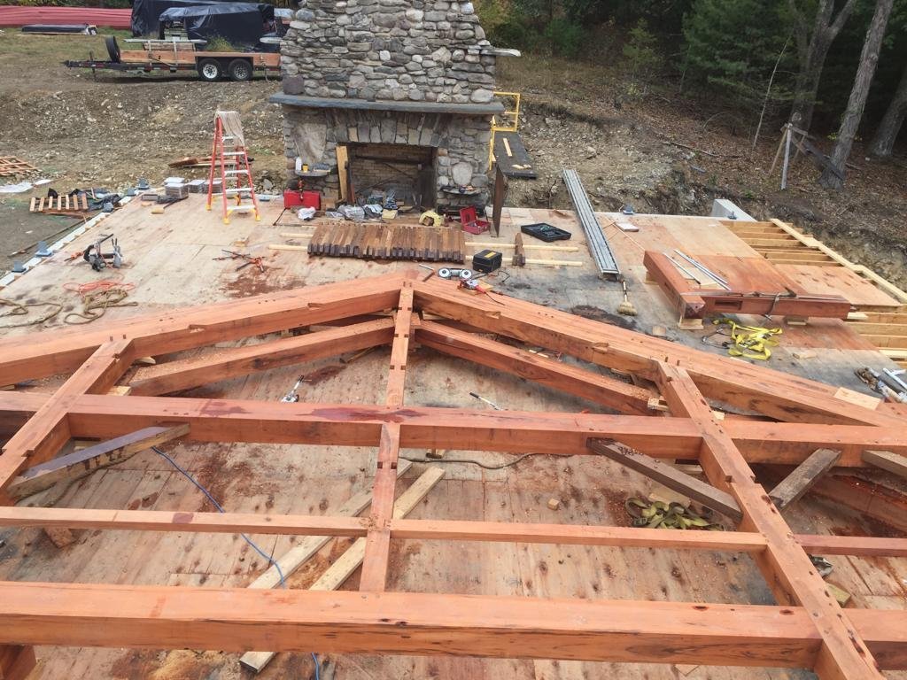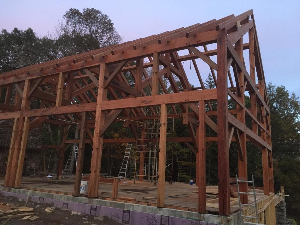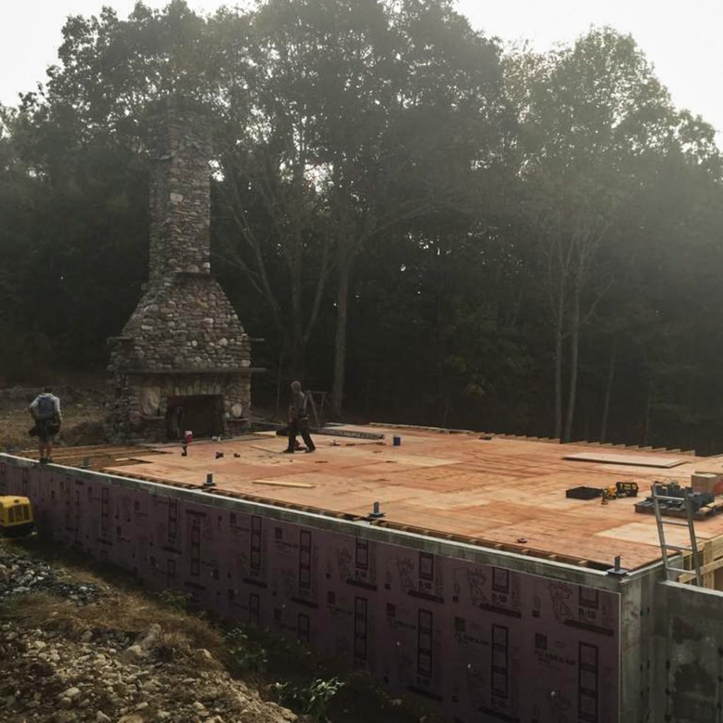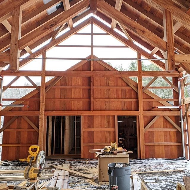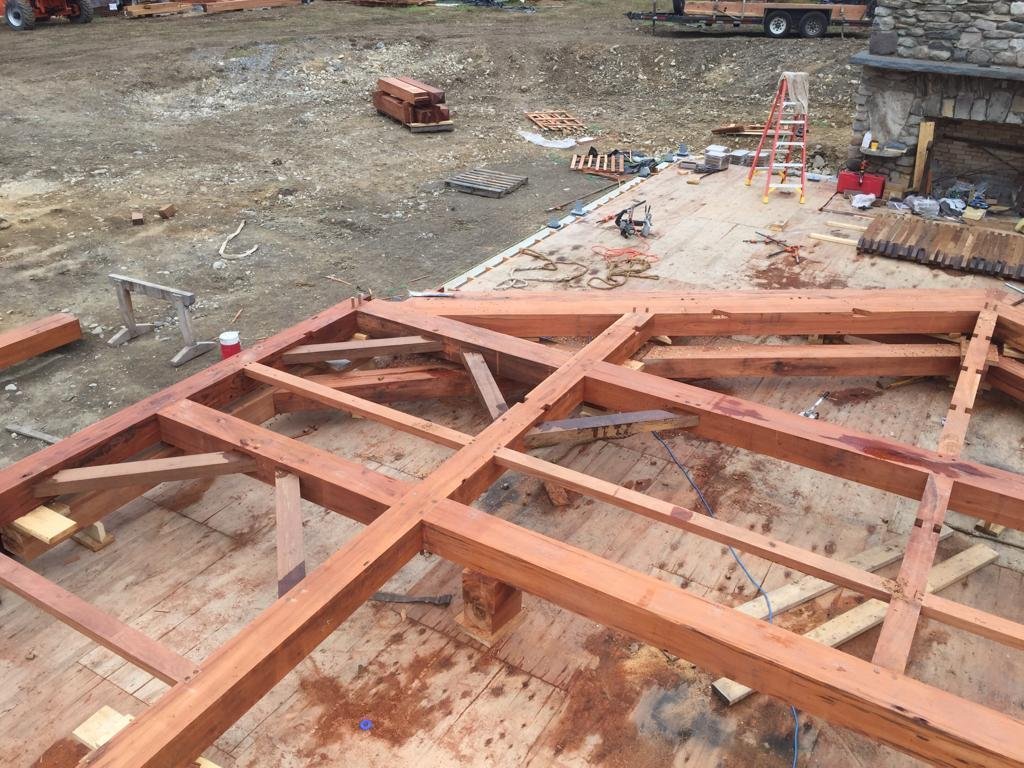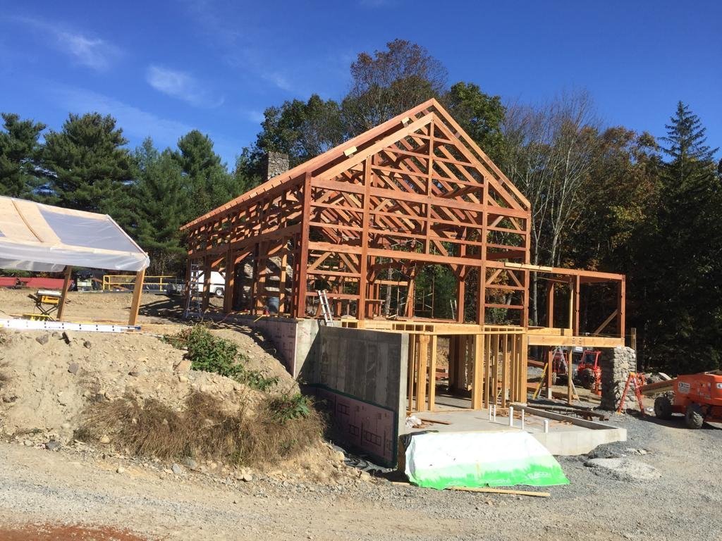 Construction on Sylvan Ridge Farm’s one-of-a-kind event barn will be completed in spring 2020. On one hand, the structure is traditional and historic, rebuilt on the footprint of the barn first erected by the Palmer family in the 1800s. To ensure authentic, high-quality workmanship, we employed Amish craftsmen from Lancaster County to erect the new mortise & tenon timber frame around the 14-foot-wide fireplace preserved from the original barn.